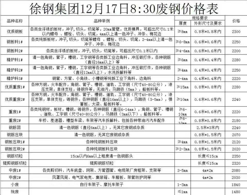 徐鋼集團**月**日*:**開始廢鋼調整價格,調整后: