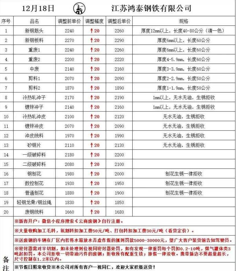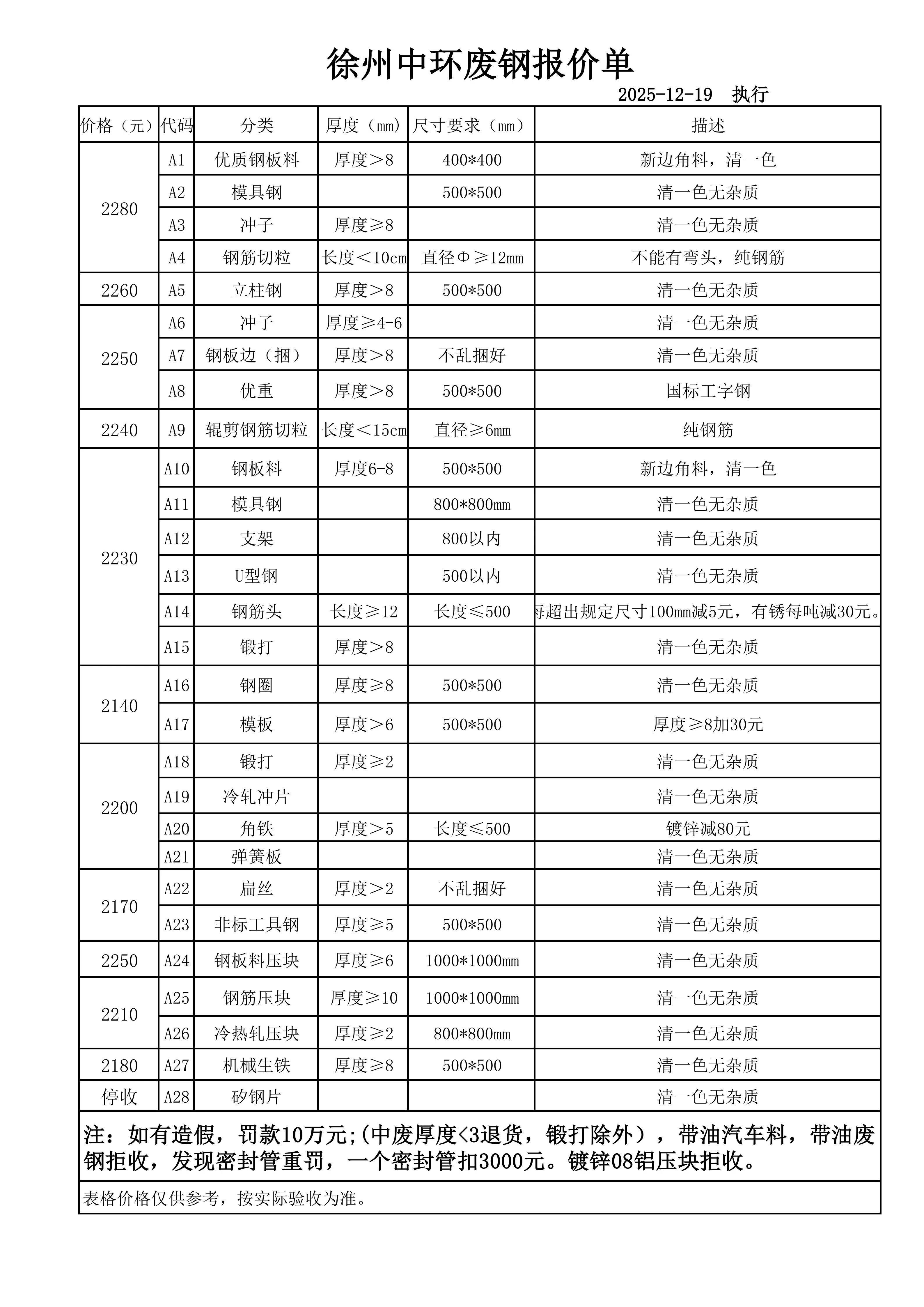 **日徐州興達廢鋼最新價,部分漲**~**: