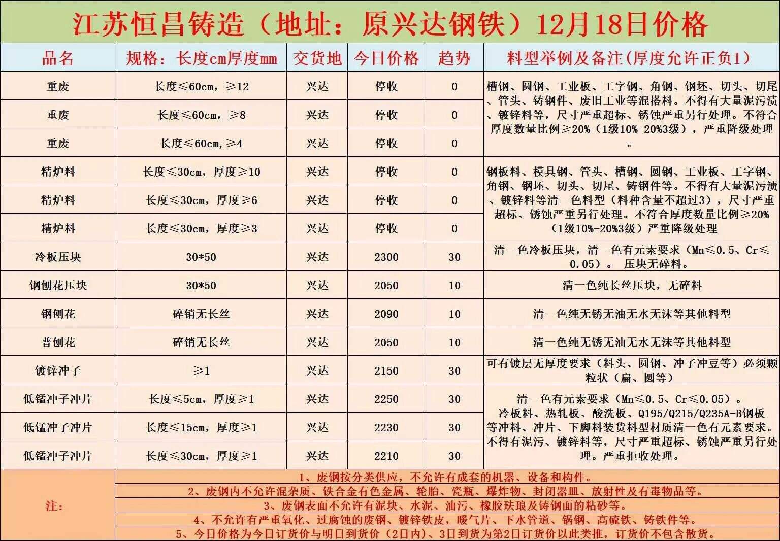 通知:江蘇恒昌鑄造(地址:原徐州興達鋼鐵)**月**日起(具體以車輛進廠時間為準)所有料型統一下調**元。