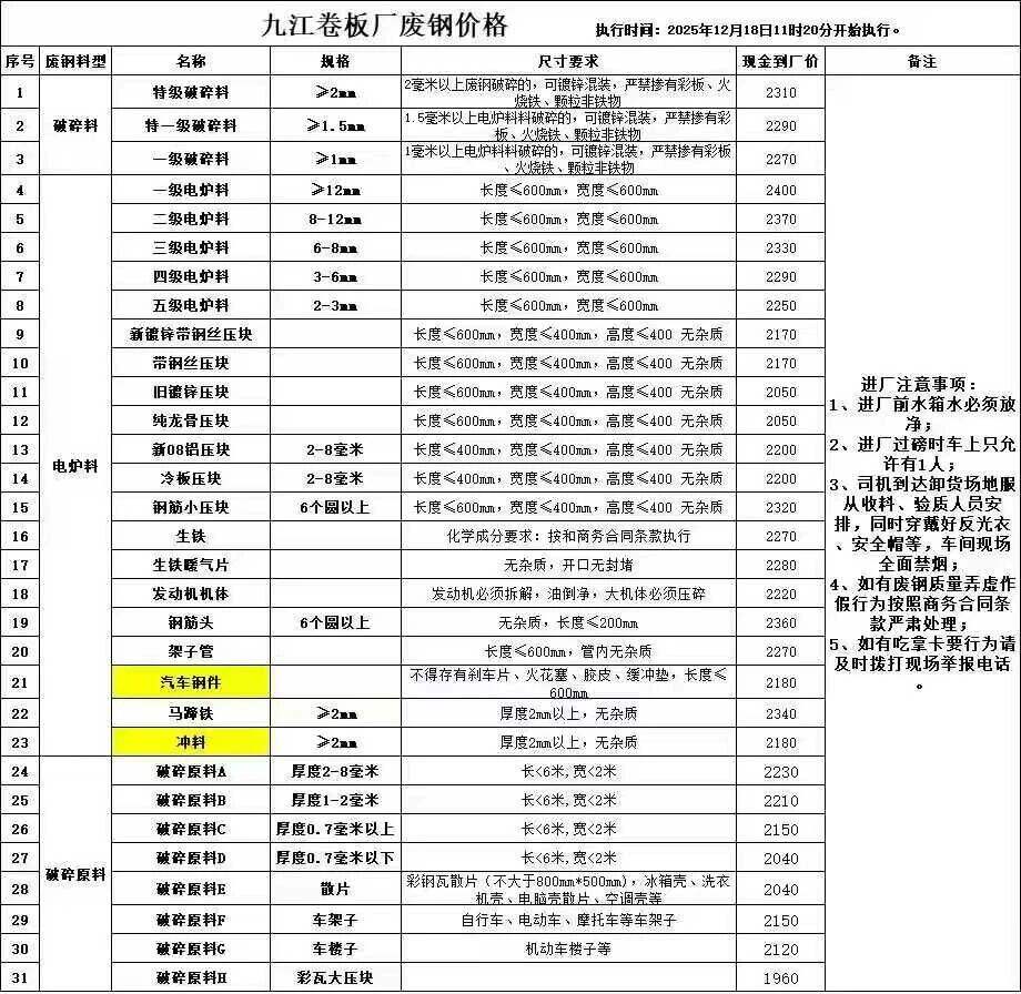 **日張宣科技廢鋼最新執(zhí)行價格:重型****-****,中型****,小型****-****,輕料****,不含稅。