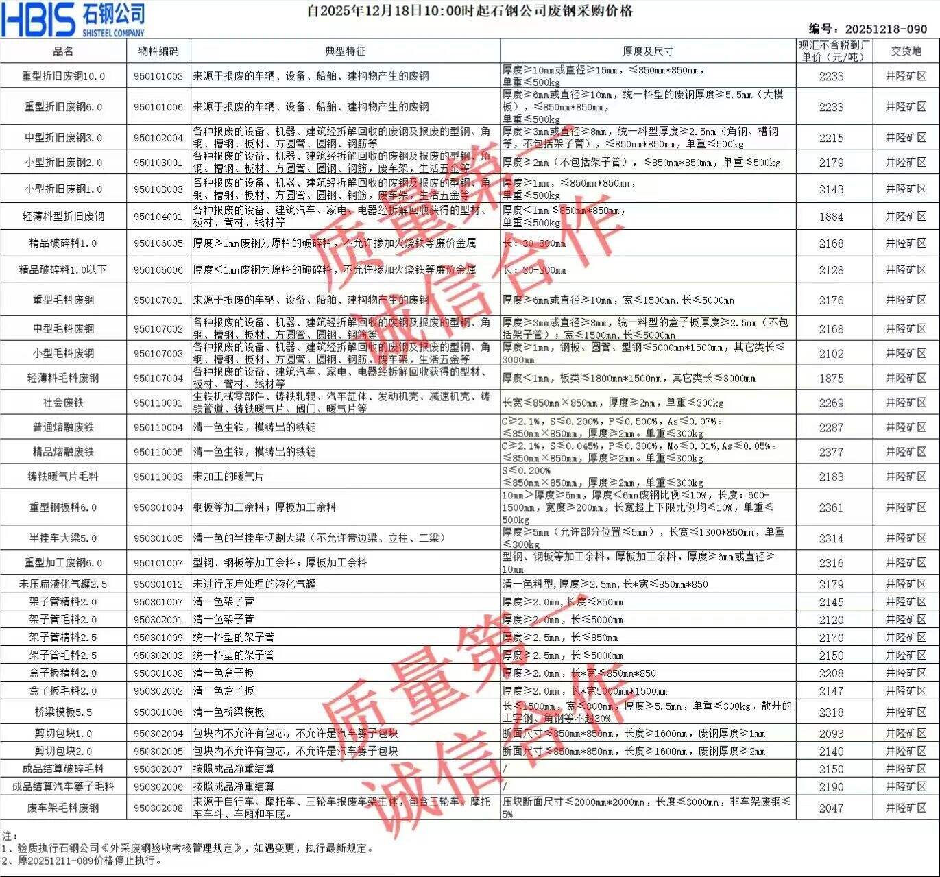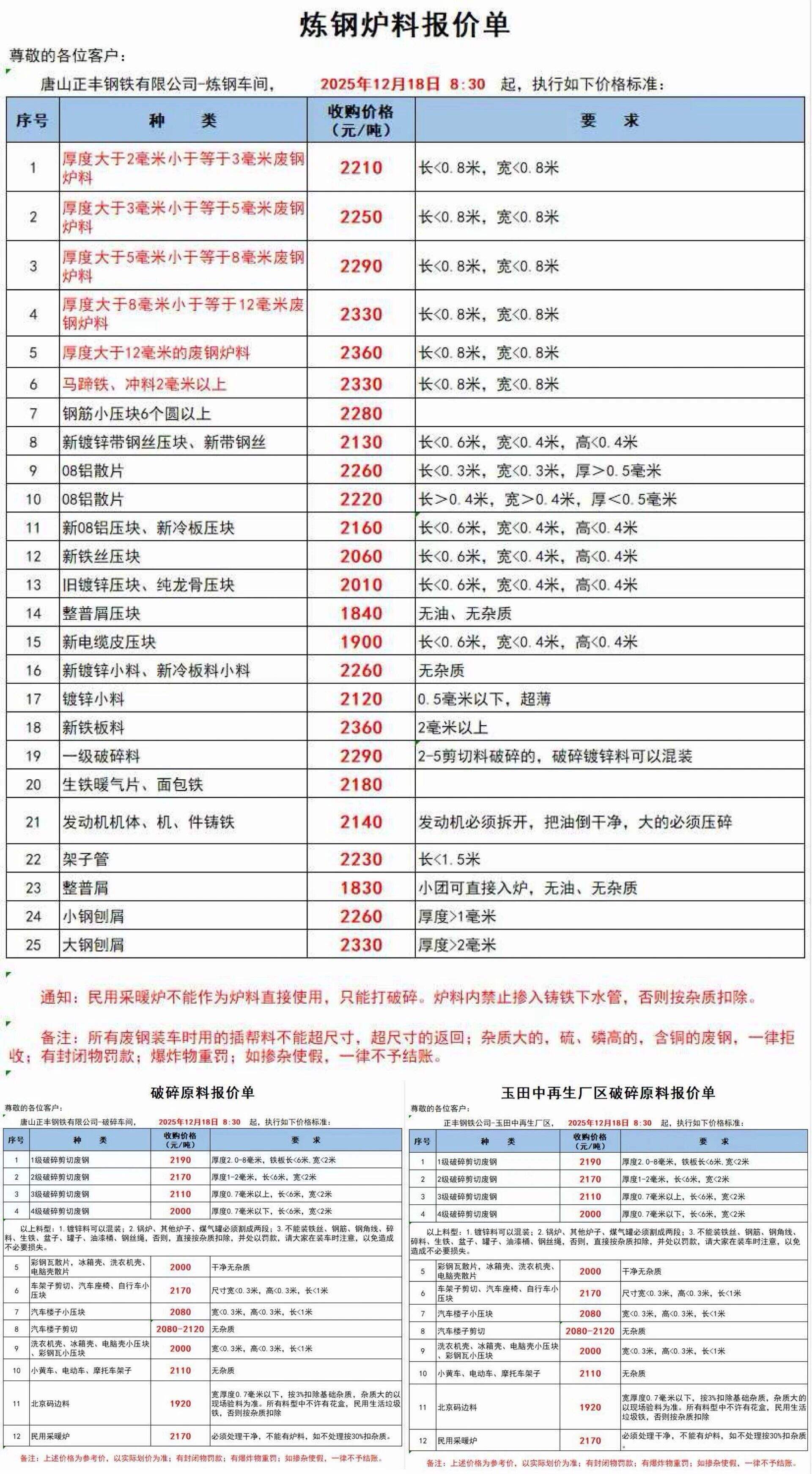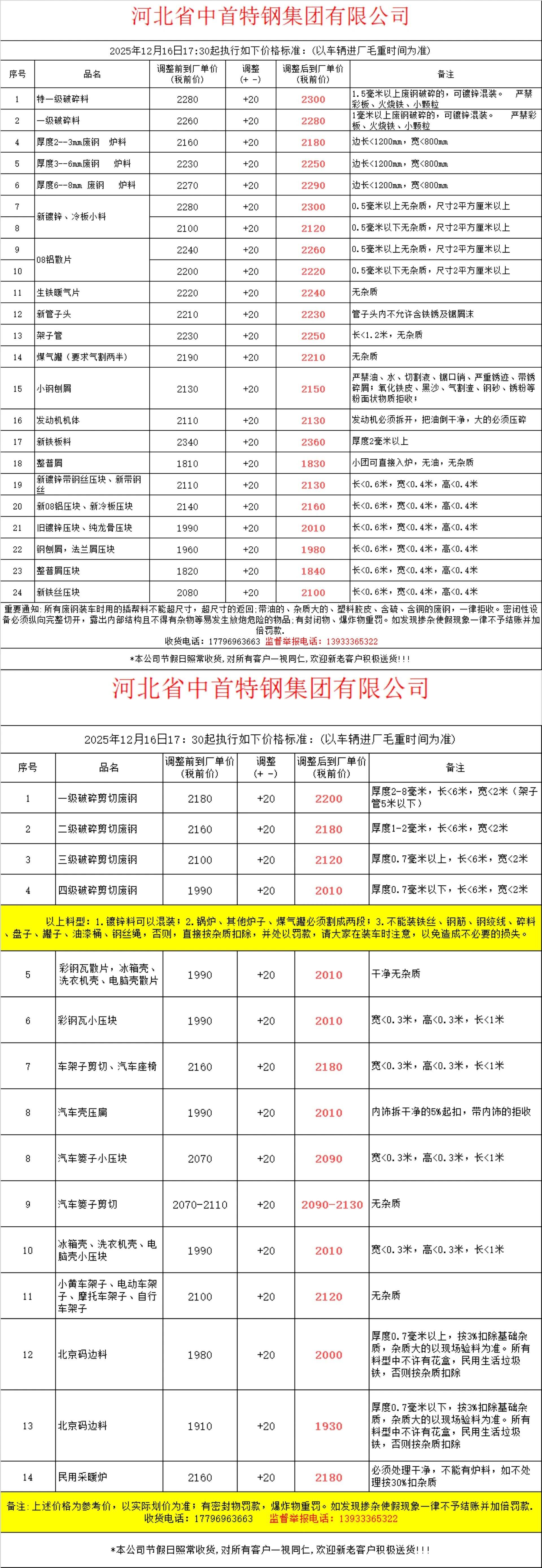 中首特鋼****年**月**日**:**起廢鋼價格上調(diào)**元以車輛進(jìn)廠毛重磅單時間為準(zhǔn)。