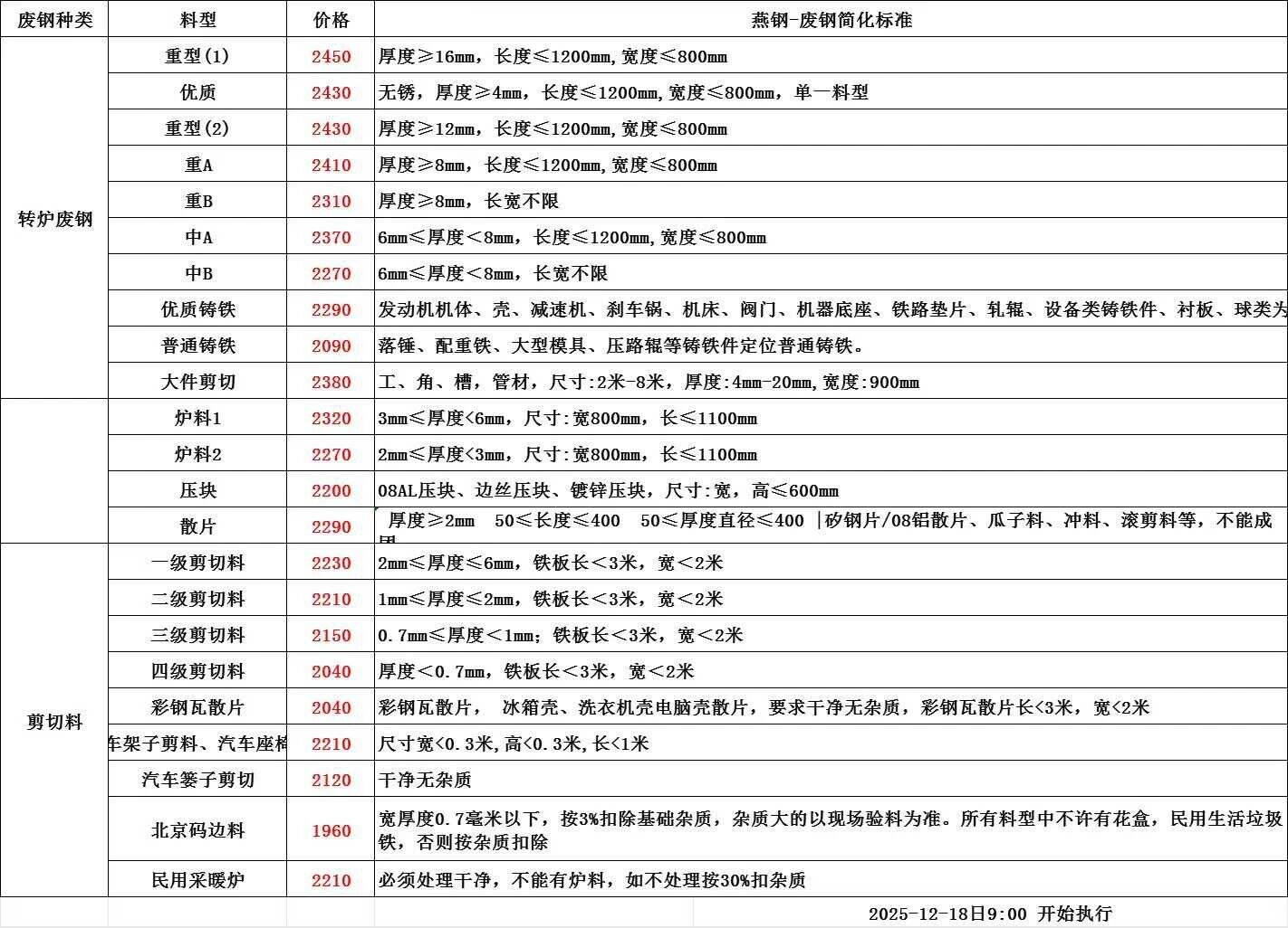 特一級破碎料****,一級-破碎料****,*-*厚廢鋼****,*-*厚廢鋼****,*-*厚廢鋼****,新鍍鋅,冷板小料****-****