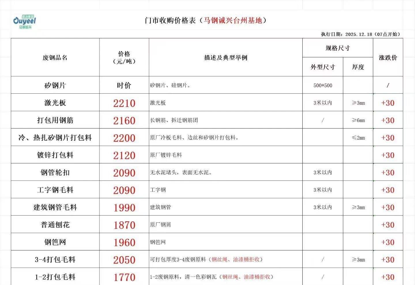 馬鋼誠興臺州基地 ** 月 ** 日廢鋼上調 ** 元/噸,請各位供應商知悉。